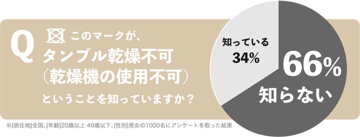 マークの意味は「タンブル乾燥不可」。約66%の方がこのマークの意味を知りませんでした。