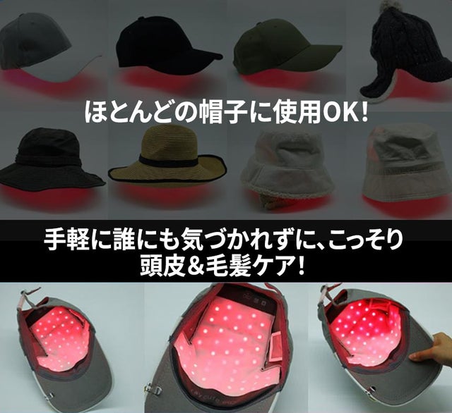 - 電源をONにしてから帽子の中に入れてそのまま頭にかぶればOK!いつでもどこで手軽にケア!