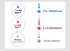 頭皮・毛髪ケア機器にとって、LEDチップの数と同じくらい重要なのが「透過率」です。頭皮・毛髪ケア機器は“LED光が頭皮内にどれだけ深く浸透しているか”がとても重要です。RAYCURE CAPのLED波長はクムホ電機ならではのLED技術力により、高い透過率で頭皮に浸透します。ほとんどの頭皮・毛髪ケア機器はレッド波長のみを使用しています。RAYCURE CAPはブルー波長(410nm)が搭載されています。