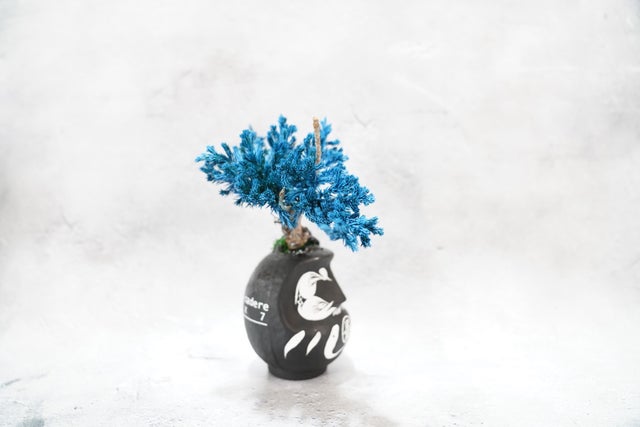 枯れてしまって廃棄する運命にあった盆栽をドライ化し、新たに色とりどりな枝葉を付け替えた盆栽へとアップサイクルしたRE BONSAIをプロダクトしている。