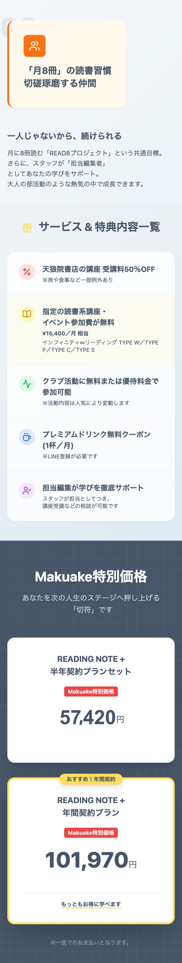 【特別割引】AI付・無ノート1冊ずつ+天狼院読書クラブ(年間契約プラン)