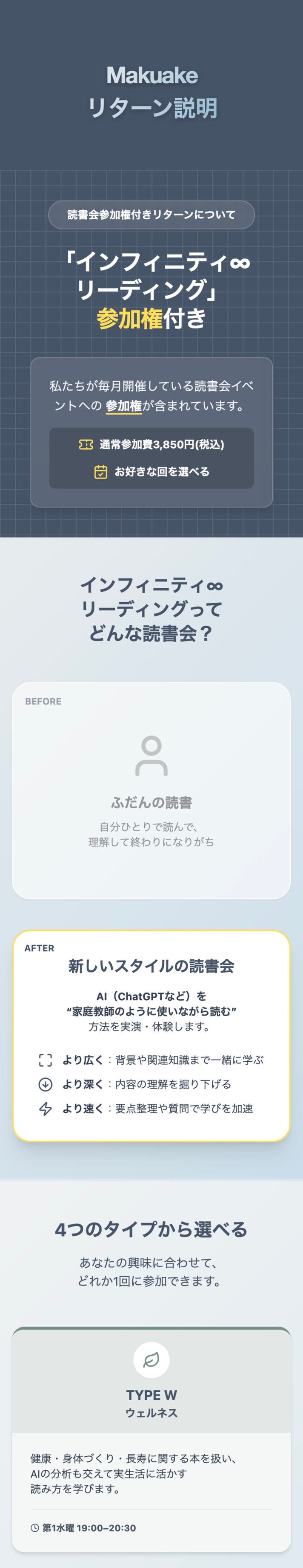 AI×読書の読書会「インフィニティ∞リーディング」に1回参加できます(ご本人様のみ)。