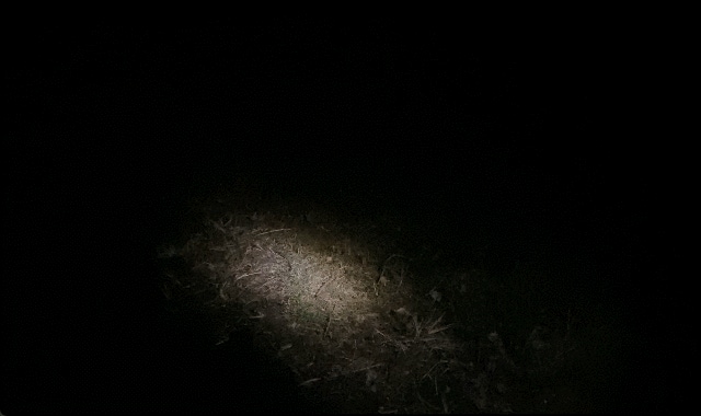 照射角が狭い一般的な懐中電動だと道幅が確認できない野山の小道も、