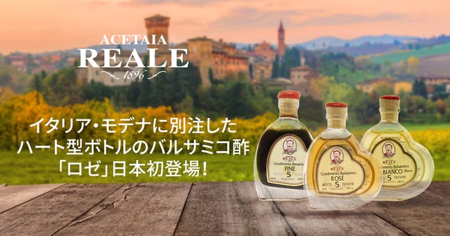 - 3種類揃ったバルサミコ酢がオリジナルのハート型ボトルで日本初登場