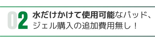 - 水だけかければ使用可能なパッド!ジェル無しのため追加費用無し!