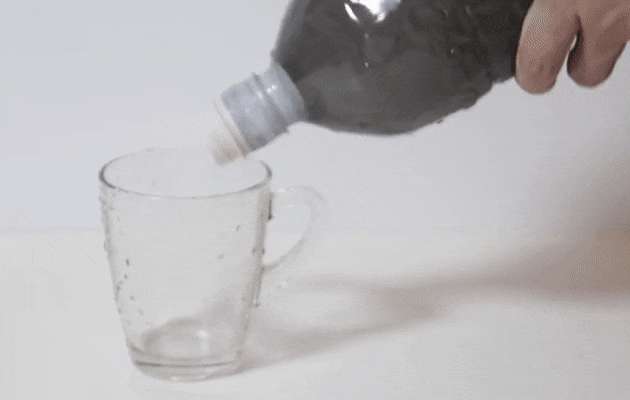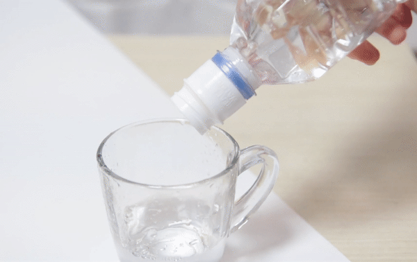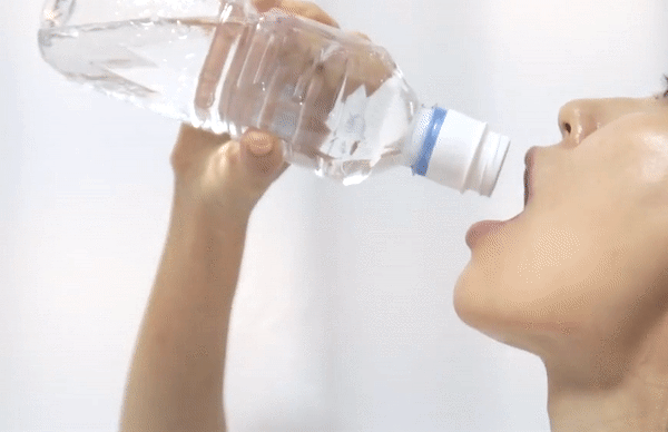 ①ミネラルウォーターの蓋を開けて