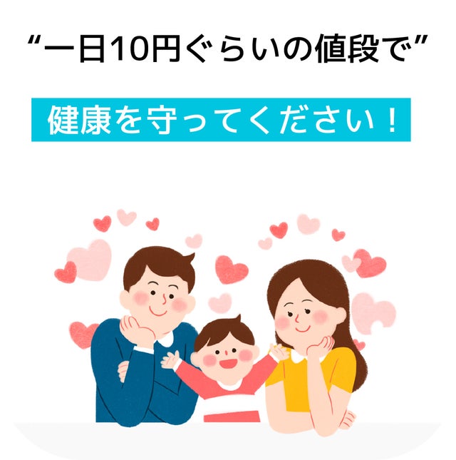 一日10円にもならない値段だから負担もならず、家族全員でお使いいただけます。