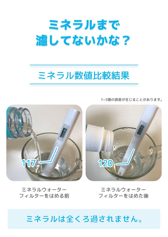 ミネラルウォーターの中のマイクロプラスチックの10分の1にも満たないフィルターで、マイクロプラスチックをろ過するには十分です。