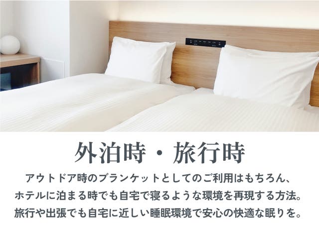 冬場はインナーブランケットとして衛生的な睡眠環境の調整役に、夏場はブランケット1枚で快適な性能を発揮するオールシーズン活躍する機能性ブランケットです。