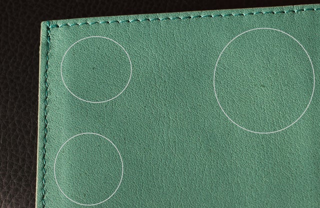 表がグリーンで、内側のポケットにブラックの革を使用しました。