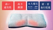 - 肩と首のポイントにハの字型に永久磁石を配置し、広範囲に血行改善。朝のスタートからスッキリ快適に