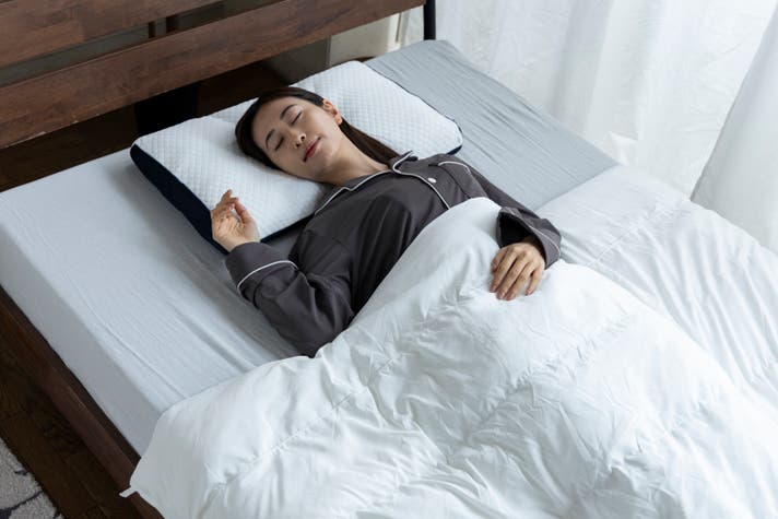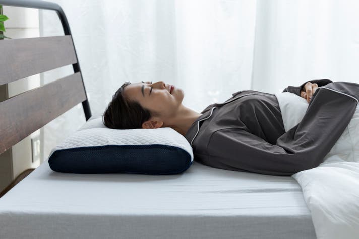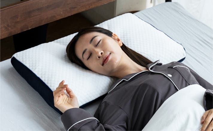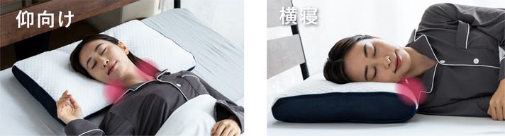 姿勢がくずれがちな横寝でも、頭から背骨までがラインになるように枕が優しくサポートしてくれて、肩や首、腕に負担がかかりにくくなっており、気持ちの良い睡眠環境が実現します。