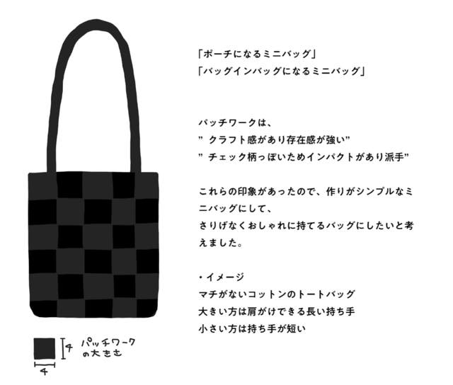 これまでのパッチワークは、”クラフト感があり存在感が強い””チェック柄っぽいためインパクトがあり派手”これらの印象があったので、作りがシンプルなミニバッグにして、さりげなくおしゃれに持てるバッグにしたいと考えました。