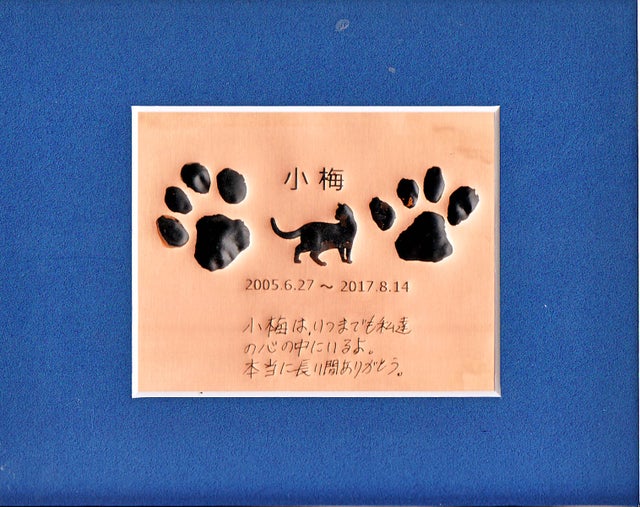 - レリーフ加工により、飼犬や飼猫のリアルな肉球を銅板に残す!