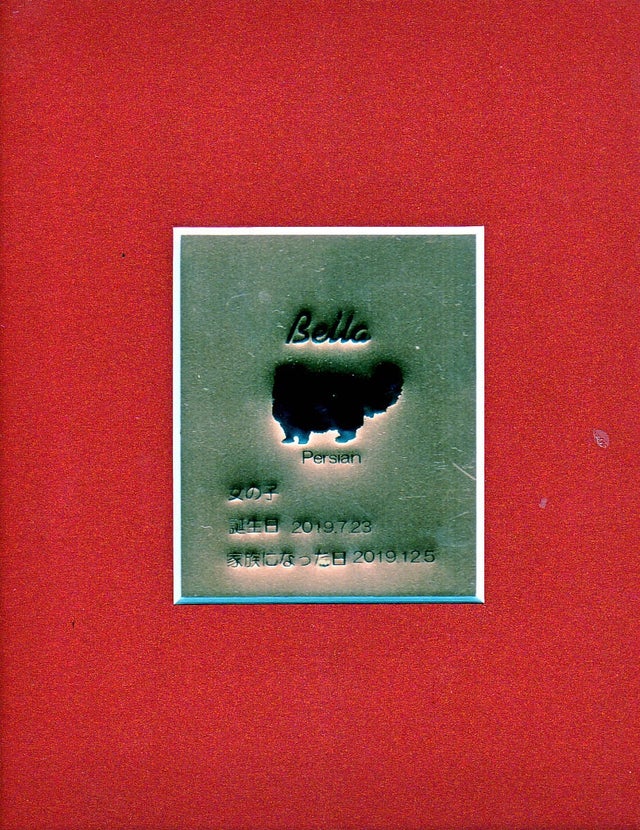 この銅板レリーフの製作準備体制できておりますが、飼い主の方に足形(肉球)をとっていただく事をお願いしなければならないのが気がかりですが。やり方が万一わからない場合はご連絡いただければいくつかの方法お教え致します。 また、制作は一人で行っているため、お時間をいただく場合がございますが何卒よろしくお願い致します。 ※デザイン・仕様は写真と若干の違いが出る場合がございます。予めご了承ください。 ※ご注文状況、使用部材の供給状況、製造工程上の都合等により出荷時期が遅れる場合があります。 ※使用感に関する返品・交換は出来ません。