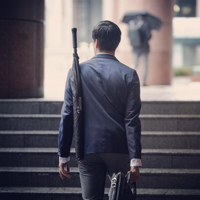 - 会食や旅行時に自分も他人も濡らさない気遣いができる傘。助手席においてる資料や鞄も濡らしません。