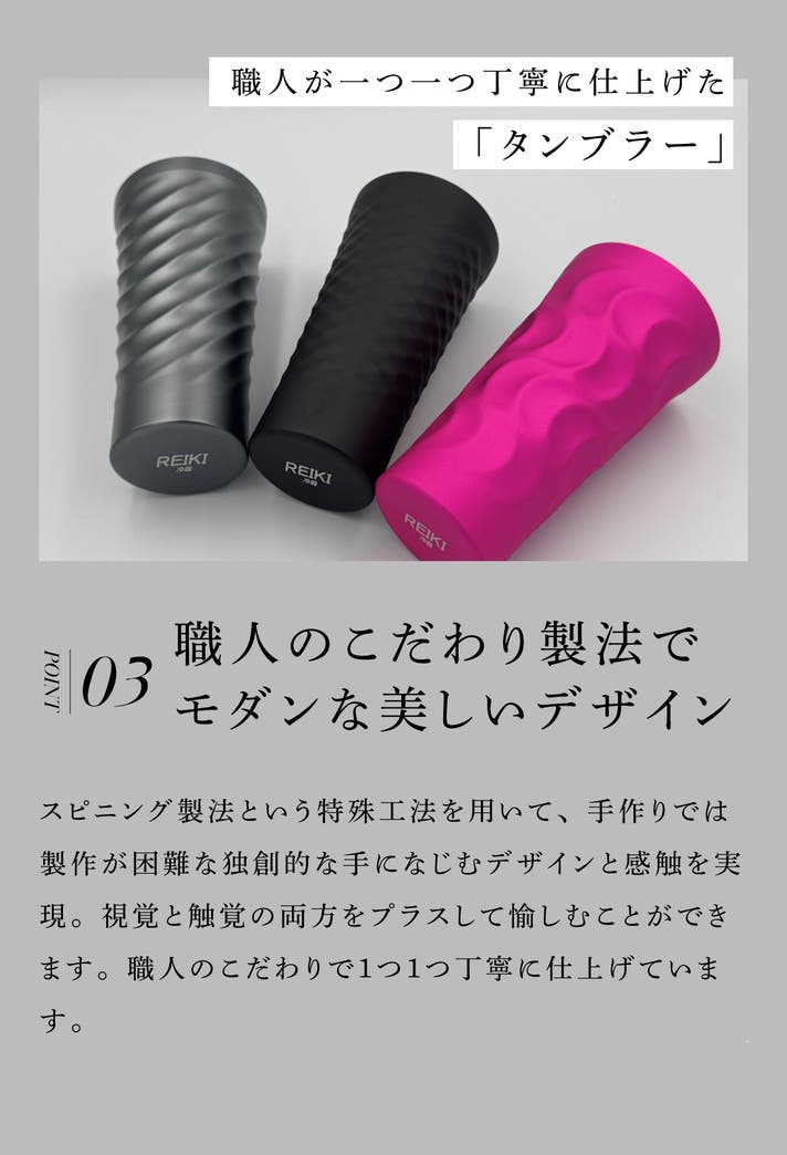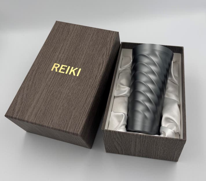 REIKI(冷器)ブランドは、1976年創業の国内スピニングマシン専門メーカーである、大東スピニング様と綿密な製作打ち合わせを行い、スピニング製法ならではの独創的なデザインを企画し、職人のこだわりを結集した形状を実現しました。そして、弊社にて日本の和を感じさせる個性的なアルマイト調色技術により、高級感あるタンブラーに仕上げました。