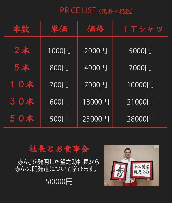 【5席限定1月20日】社長とお食事会 + 赤ん 紅梅味 50本 + Tシャツ