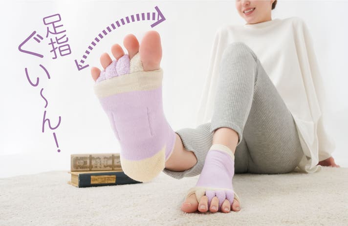 ▶ 理由①:5本指をやさしく解放。縮こまった足指がぐい〜んと心地よく広がる設計!
