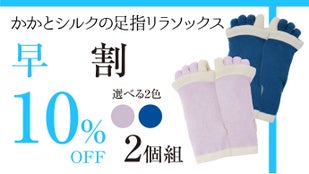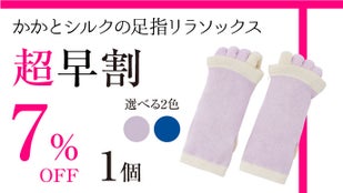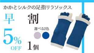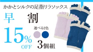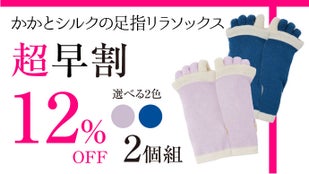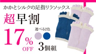 より多くの方にお得に「かかとシルクの足指リラソックス」をご使用いただきたく、先着順ではございますが【超早割】もご用意させていただきました!割引率は3個セットで最大17%OFF!この機会に是非お求めください。