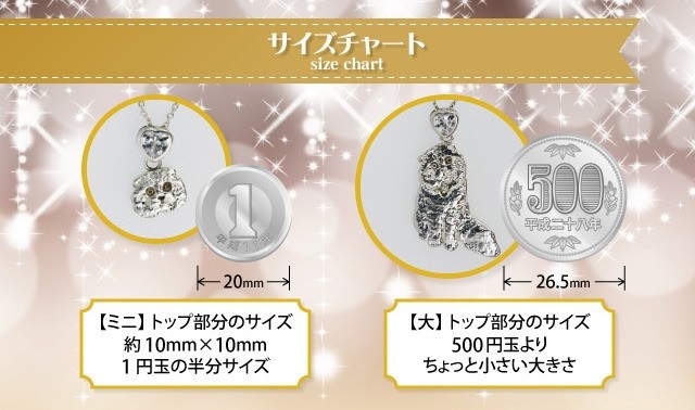 サイズはミニ(1cm×1cm)と大(2.5cm×2.5cm)からお選びいただけます。