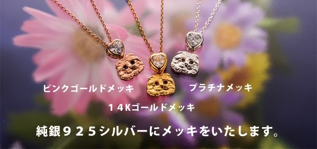 925シルバーのトップとチェーンの部分は下記の3つからご希望のメッキをお選び頂けます。