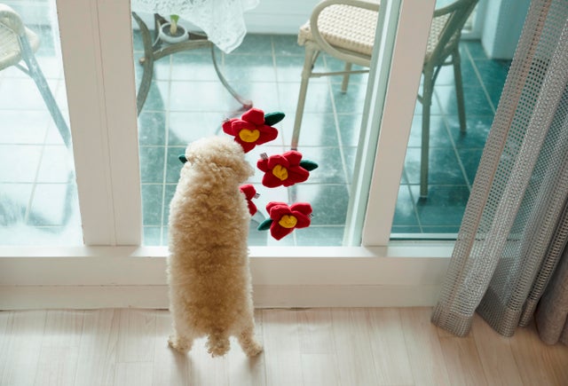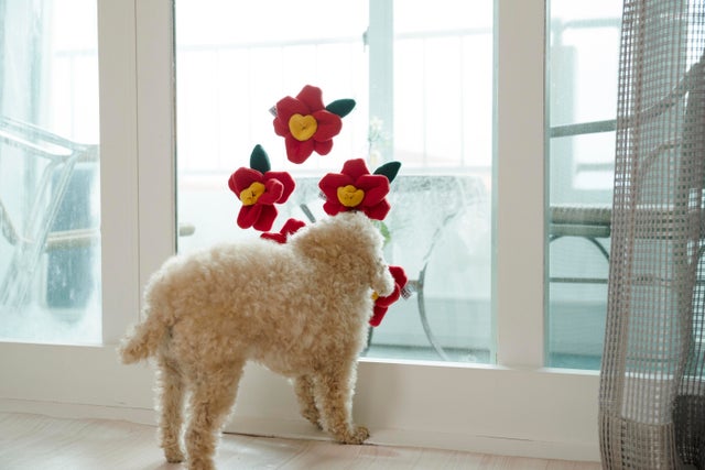 いつも出かけた私たちを待っている大切なペットのために心込めて作ったきれいで楽しめるツバキの花のノーズワークおもちゃを紹介します。