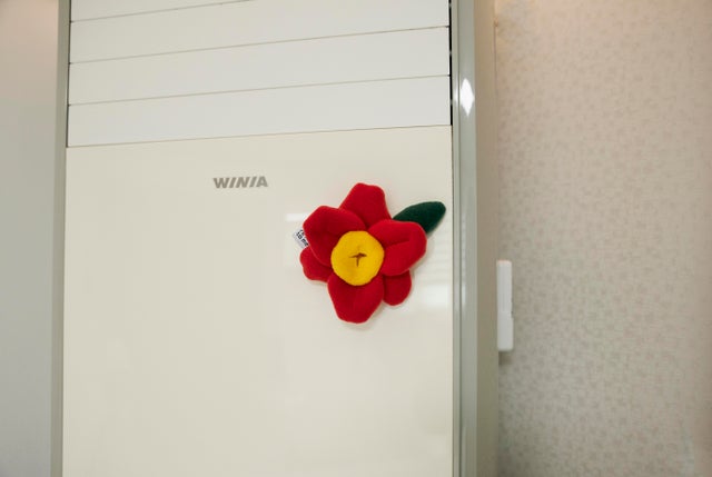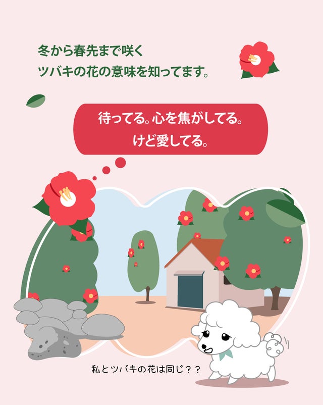 いつも出かけたママとパパが家に帰ることを待ってるワンちゃん。ひとりぼっちになって寂しくなるわんちゃん。花のように大切なペットはツバキの花の意味のようにいつも私たちを待っており、いつも無条件に愛してくれます。そこでツバキの花の意味を込めてデザインしました。