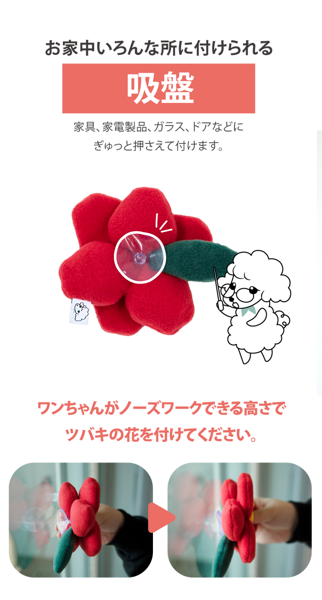 - 吸盤があり家具やガラスに付けてノーズワークが出来る!家に花が咲くようなインテリア効果もあり!