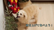 トリ(トイプードル・3.8kg)の頭とツバキの花はほぼ同じサイズ!