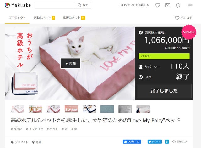 「Makuake(マクアケ)」は、実行者の想いを応援購入によって実現するアタラシイものやサービスのプラットフォームです。このページは、 プロダクトカテゴリの 「【高級ホテルのベッドから誕生した】犬や猫のための毛が付かない“LUNA”布団&枕」プロジェクト詳細ページです。