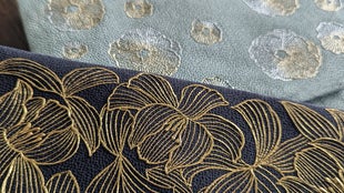 金彩は、染め上がった絹の生地に金や銀の箔、金粉等を接着する技術で、友禅染をより華やかにする加工の一つです。