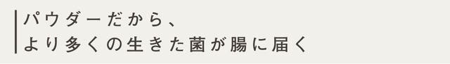 パウダー状に圧縮させることで、生きた菌をより効率的に腸へ届けることが可能。