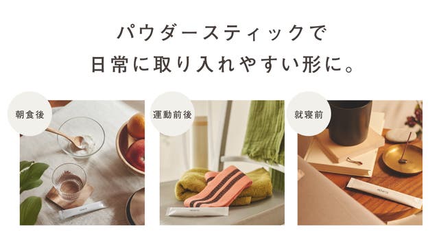 目安は1日1本。朝食後や、運動前後、就寝前等、日常に取り入れやすい形になりました。お水と一緒だと、さらっとお召し上がりいただけます。