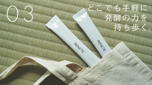 甘酒の生菌で腸を健やかに導くRenateプロバイオティクスパウダーを継続的に取り入れることで、腸から健やかな身体に導きます。