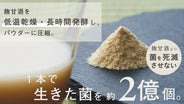 長時間発酵により約10万個に増加した菌を、低温乾燥させることで死滅させることなくパウダー状にしました。