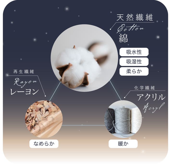 だからこそ、化学繊維だけでなく、吸湿性がある自然由来の繊維を組み合わせました。