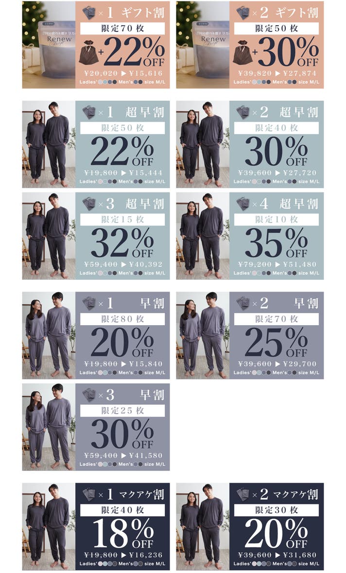 【マクアケ割】Renew Sleep リカバリーパジャマ 上下セット×2