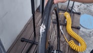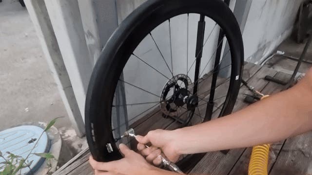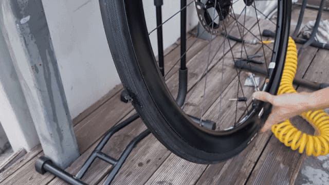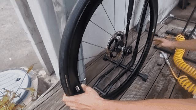 修理後、泡が出るような現象が見られることがありますが、これは正常な反応です。 泡のような現象が発生している間は、プラグ部分を乾いた地面で押さえつけながら、2〜3分ほど自転車で走行してください。これにより、修理が完了します。