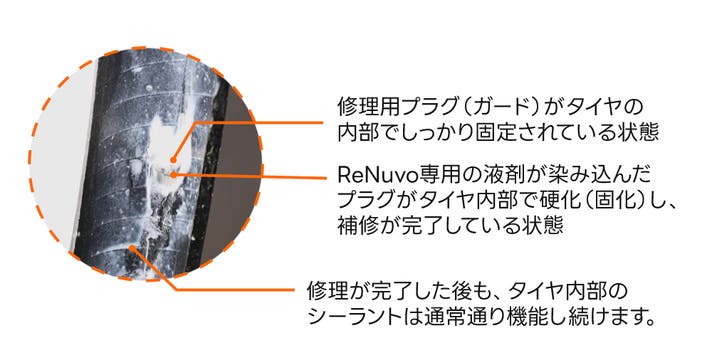 プラグに含まれたシーラントが短時間で硬化するため、再び走行が可能となります。