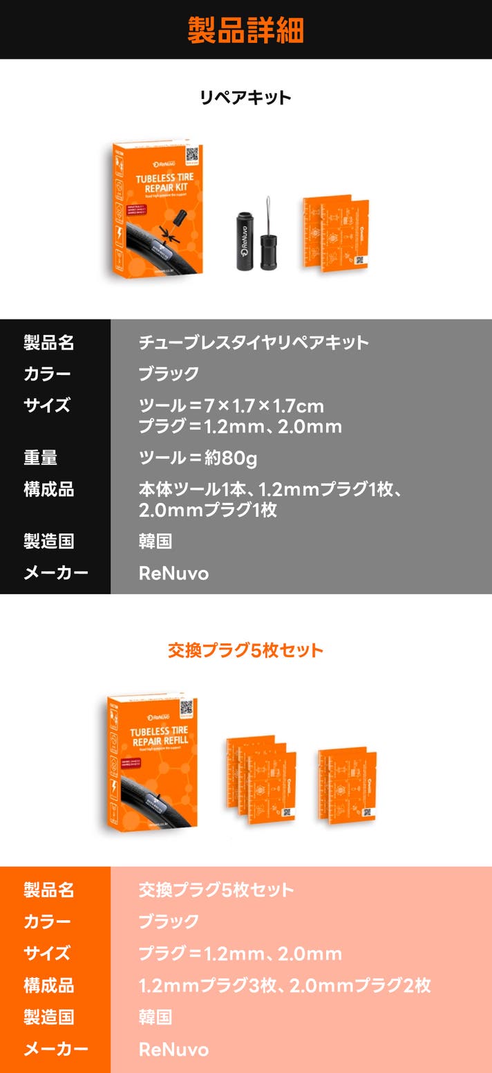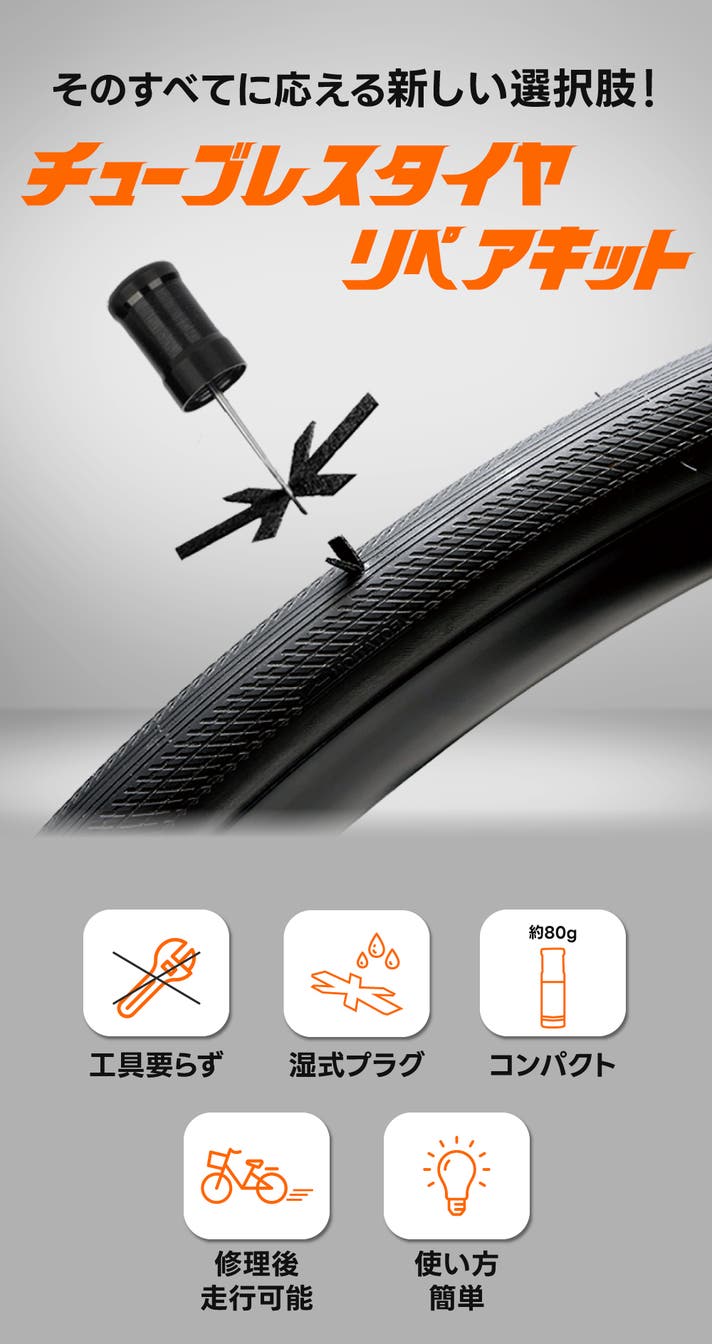 - 液体や工具を使わず、差し込むだけでパンク穴をふさげる!チューブレスタイヤ専用のリペアキット