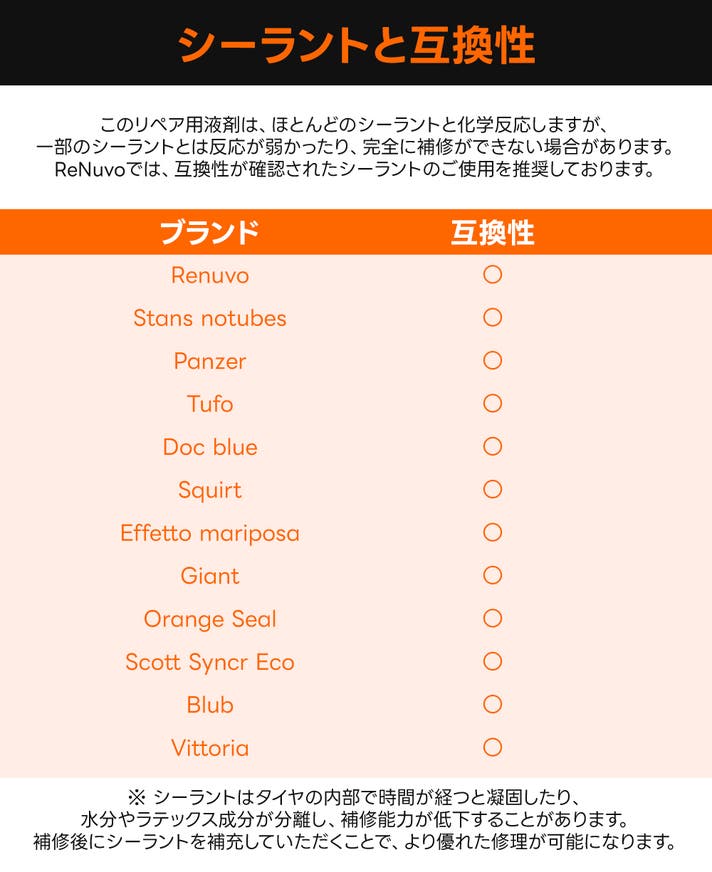 タイヤ内の液体に頼らず、単体でしっかりと硬化・密着する構造となっています。