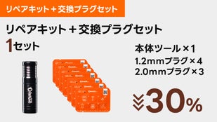 A:大小2種類のプラグを使い分けることで、最大約1cm程度までのパンク穴に対応できるよう設計されています。