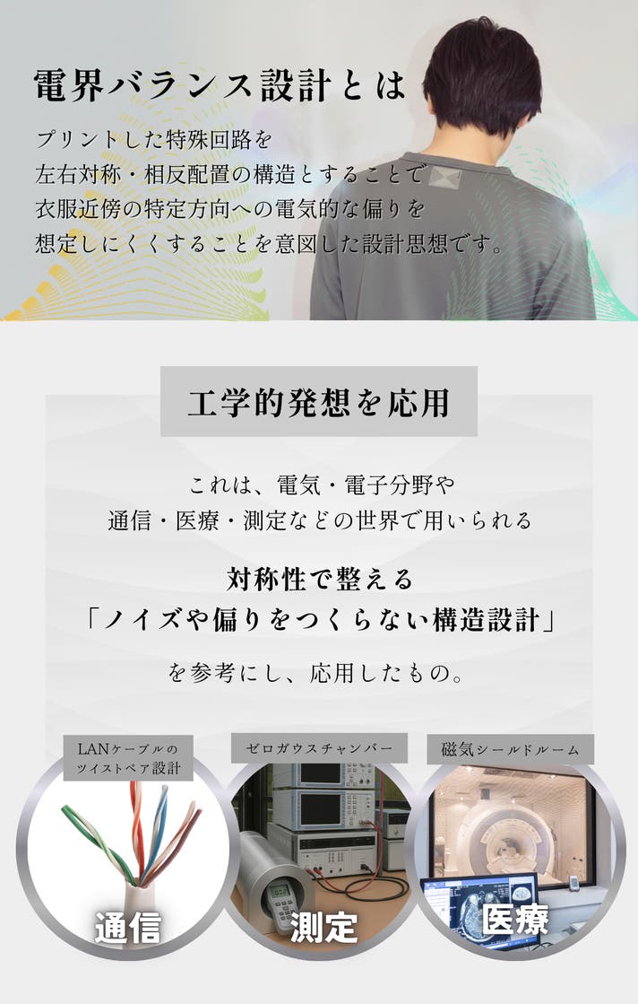 - 工学的発想の導電性プリントを左右対称・相反配置し、構造的均衡を意図した〈電界バランス設計〉