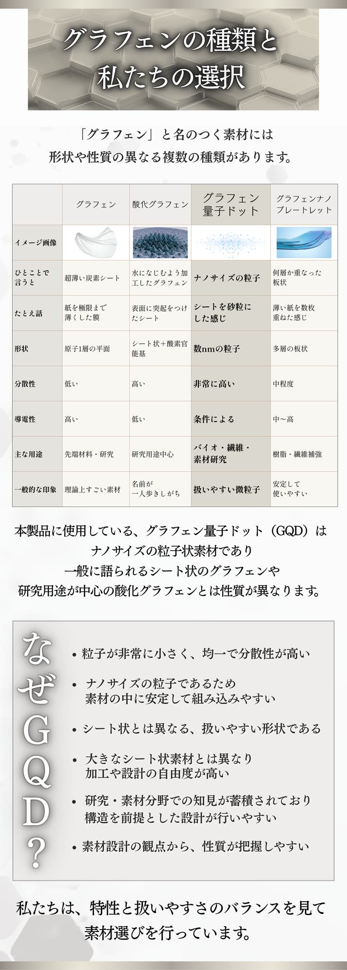 - 先端分野で注目のグラフェンが微細化された「グラフェン量子ドット」の、新コンディショニングウェア