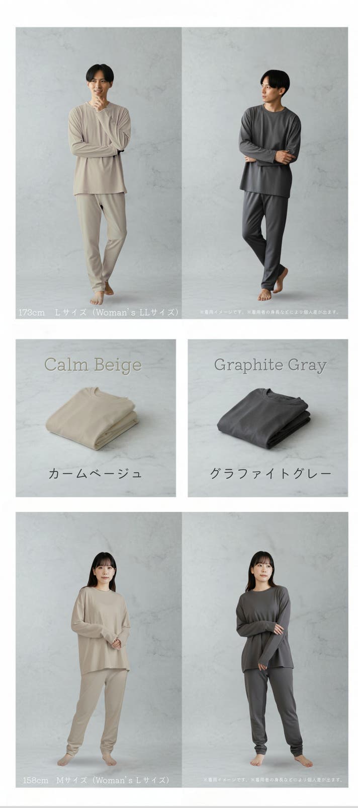 (トップス・パンツのサイズとカラーは上下統一になります)