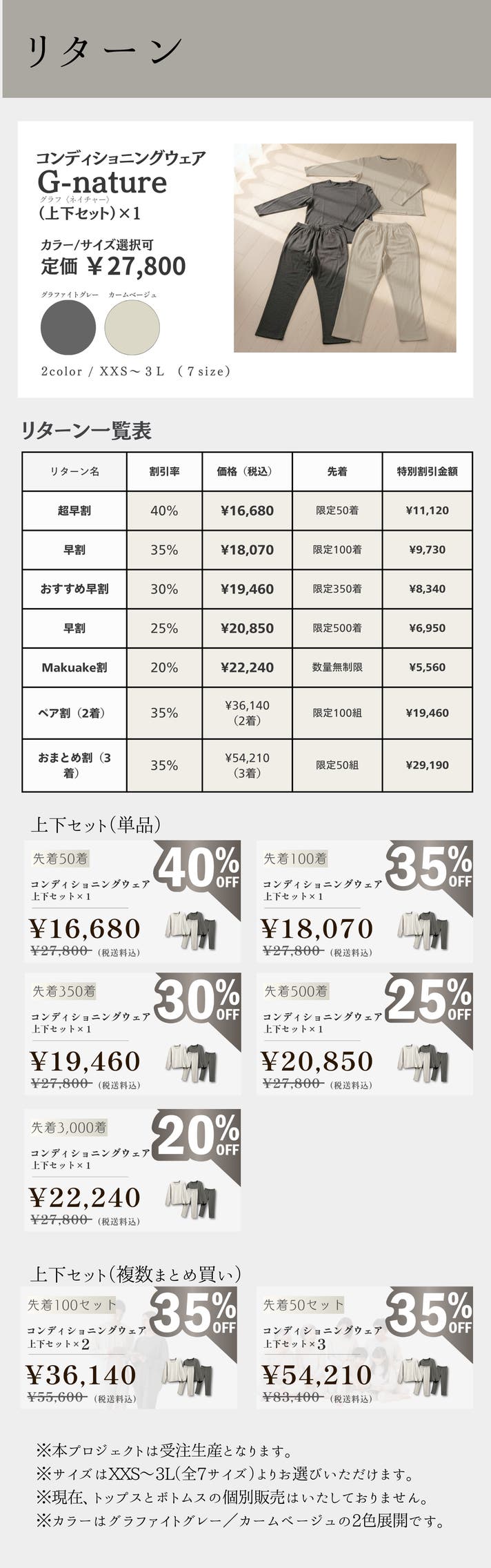 【ペア割35%オフ】G-nature コンディショニングウェア上下×2
