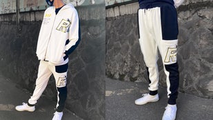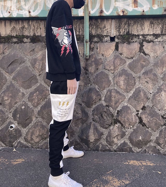 【袖FIREモチーフ切替トレーナー&サイド切替カーゴパンツセット】