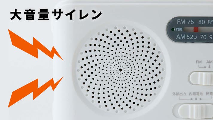 A. 近くにいる人が驚くほどの大きな音が鳴ります。家屋に閉じ込められた際や、周囲に助けを求める際に、声を出し続けなくても自分の居場所を知らせることができます。 ※測定条件としては、距離約1mの位置で測定し、音量は約82.1dB。一般的な市販の個人用防犯アラームとほぼ同程度の音量となります。