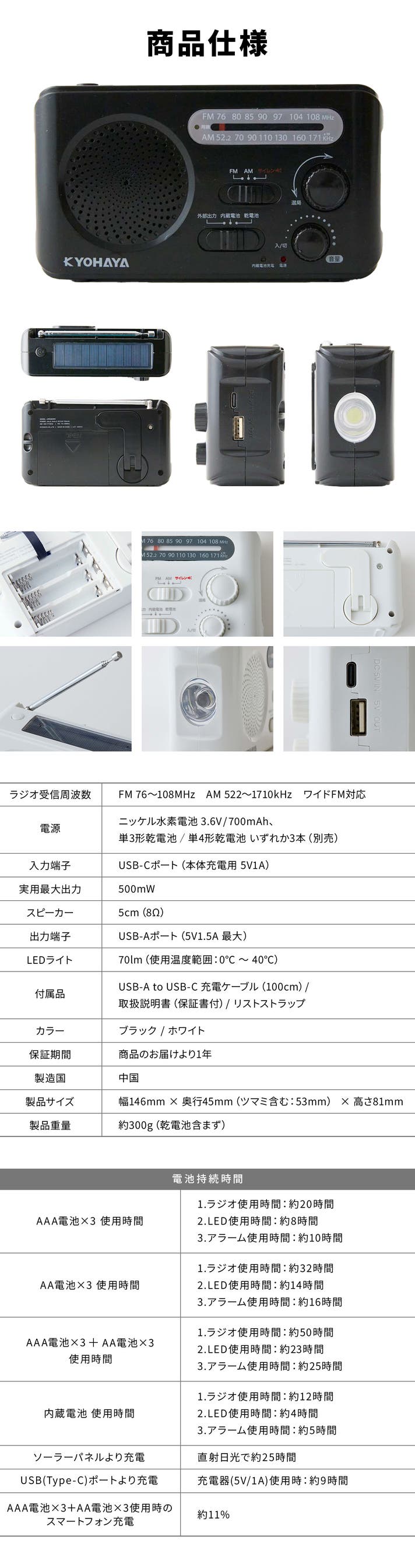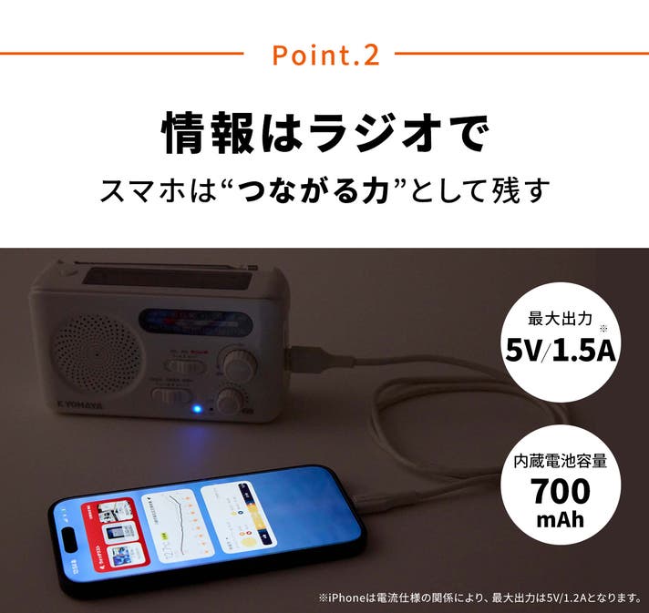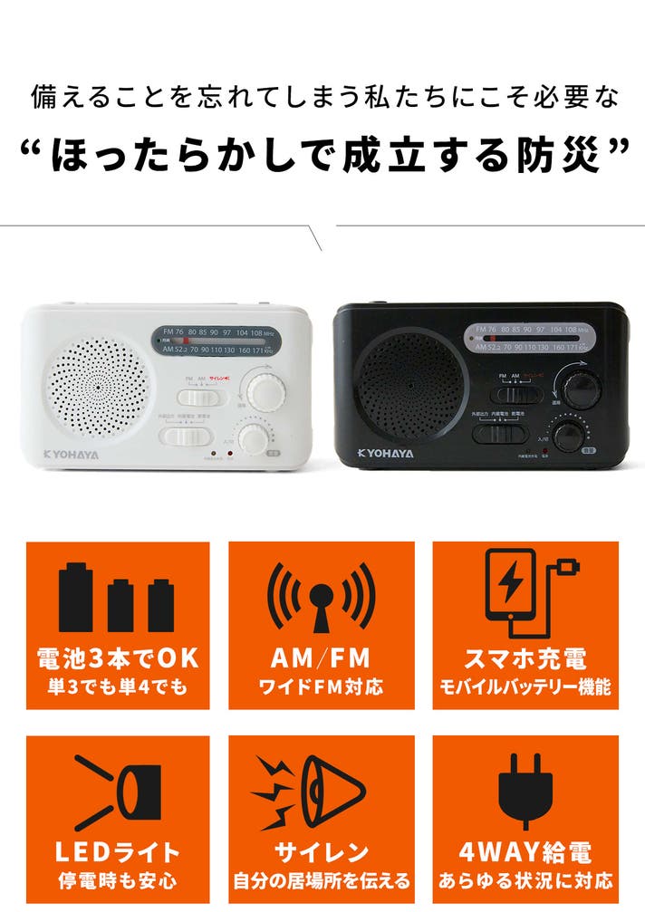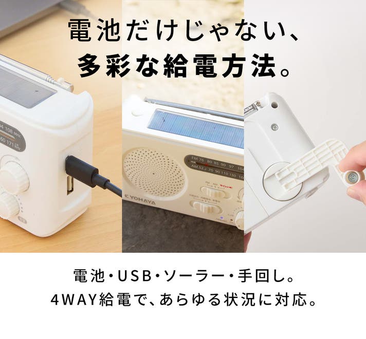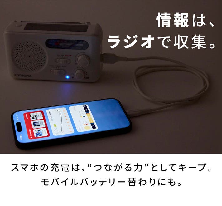 - 【スマホの充電を大切にキープ】情報はラジオで収集。停電時には、モバイルバッテリー替わりにも!